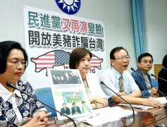 The Chinese Nationalist Party (KMT) caucus yesterday holds a news conference in Taipei to criticize the Democratic Progressive Party for changing its stance on US pork imports.Photo: Fang Pin-chao, Taipei Times BACKROOM DEALS? KMT Legis...