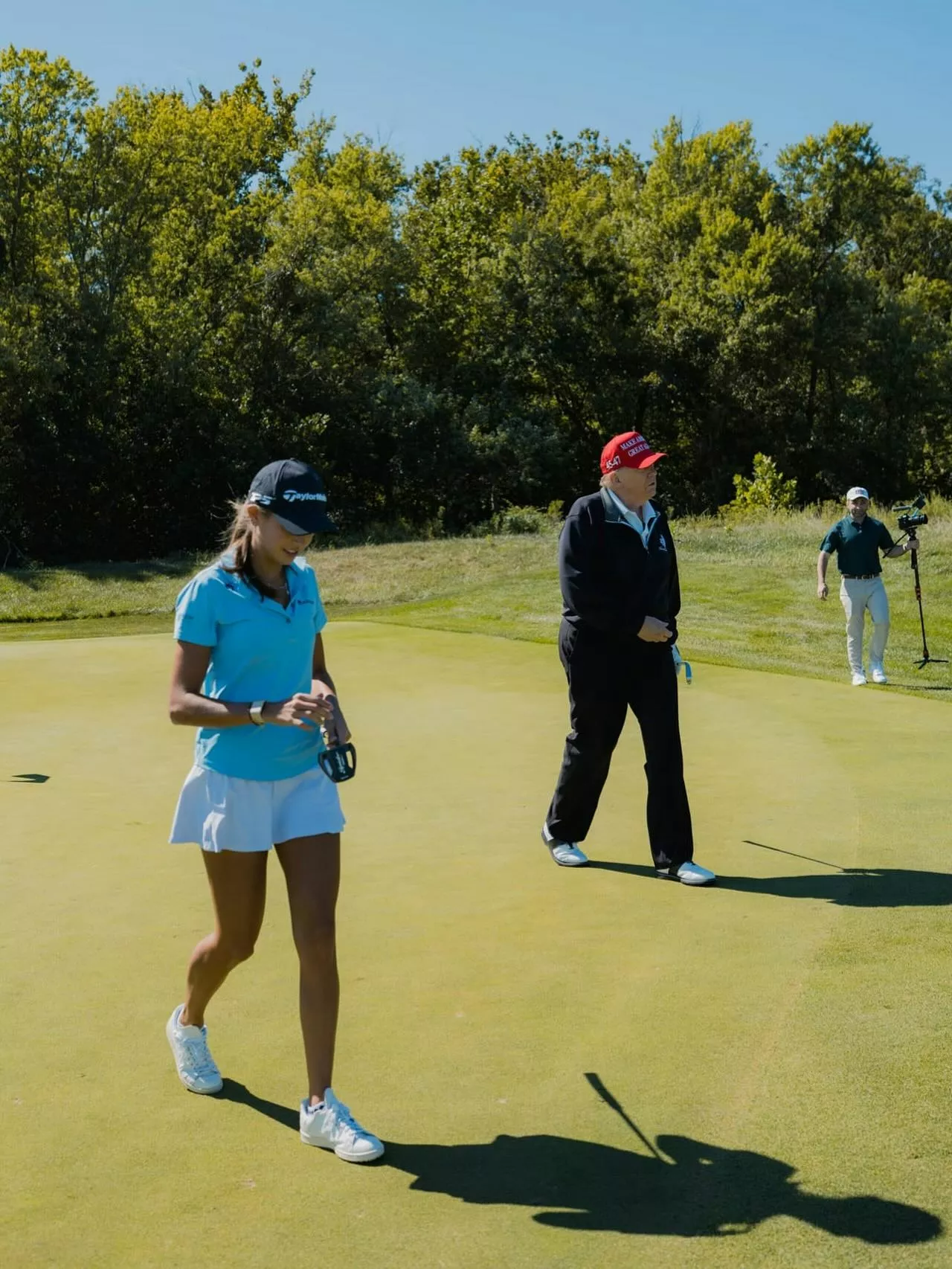 川普陪孙女打高尔夫球,祖孙互动温馨。(Instagram@kaitrumpgolfer)