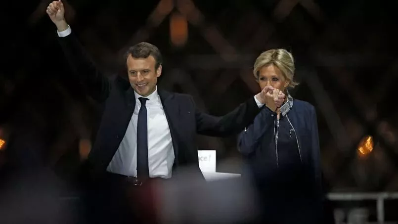 法国总统埃马纽埃尔·马克龙与布丽吉特·马克龙(右)
