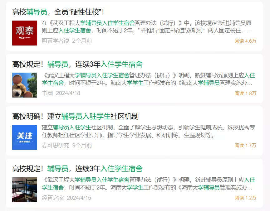 10月11日,南方周末发了一篇名为《辅导员住进学生宿舍楼》的报道。