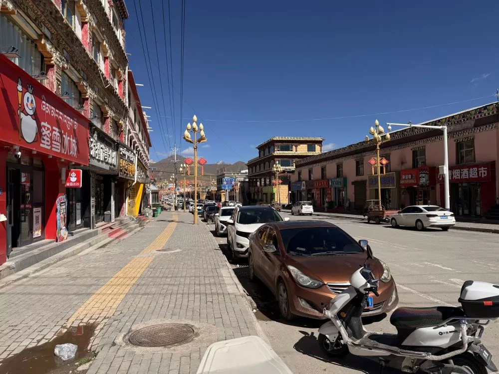 如今,人们更多惊讶于这个偏远的高原县城竟已如此现代。2500多家商铺、近10个快递网点和4家外卖平台,让这里的生活节奏与内地已无二致。商店的货架上摆着西班牙大星啤酒,时兴的“冰杯”摆了半个冰柜,每家饭馆都有外卖员进出的身影。
