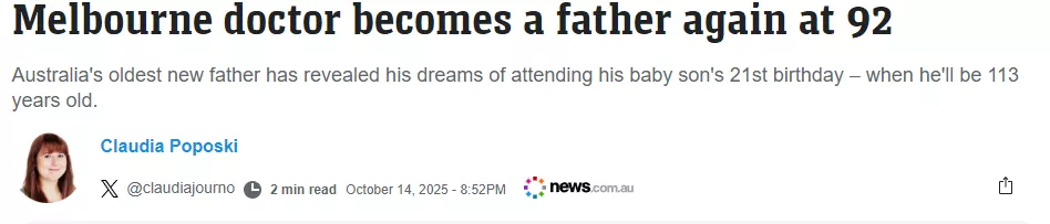 在澳大利亚墨尔本,一位年届93岁的医生,成为了全澳最年长的新手爸爸——而他并不打算就此止步。