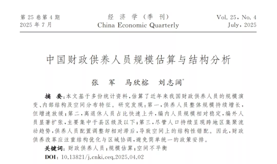 好在,最近复旦大学的三位学者(张军、马欣榕、刘志阔)发表了一篇研究报告,他们从各种官方统计的犄角旮旯里搜集数据,估算出了中国财政供养人员的真实规模和结构,总算填补了这些年的数据空白。