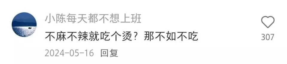 还有“麻辣烫不加麻酱不喝汤,不就是水煮菜”。