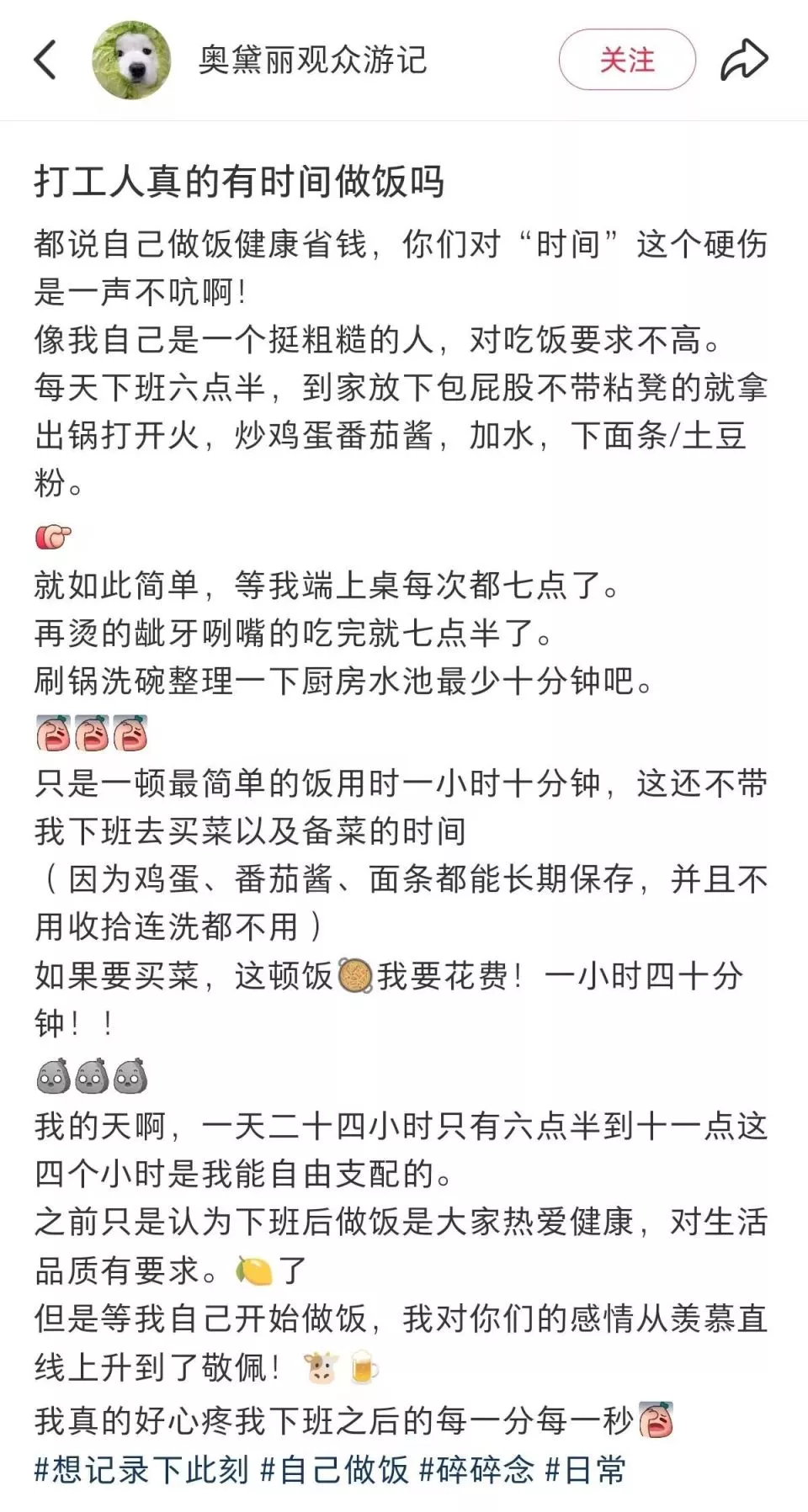养宠人觉得“亏欠了宠物”,没有时间陪宠物玩,所以想给宠物做饭。而打工人一直在亏欠自己。