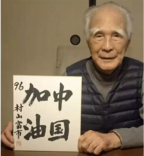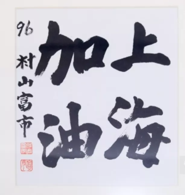 2020年新冠疫情期间,96岁的村山亲笔书写“中国加油”“武汉加油”“上海加油”三幅书法作品,赠送给上海市档案馆,鼓舞中国民众。