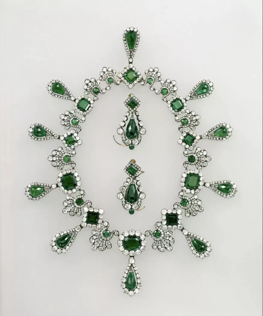 据罗浮宫官网介绍,这顶皇冠曾属于拿破崙三世妻子欧仁妮皇后,饰有金色雄鹰,镶嵌着1354颗鑽石和56颗祖母绿。