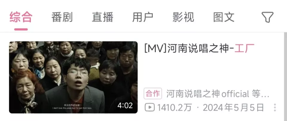 张方钊演唱的歌曲《工厂》在b站达到1410.2万的播放量。(图/bilibili)