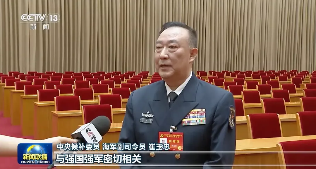 中央候补委员、海军副司令员崔玉忠表示,这次全会上,习主席代表中央政治局所作的工作报告,总结工作系统全面,部署任务重点突出。海军是战略性军种,与强国强军密切相关。我们一定坚决贯彻党中央、习主席决策部署,紧扣百年目标,瞄准世界一流,全面提升海上威慑和实战能力,不断开创海军现代化建设的新局面,以优异成绩向党中央、习主席交出合格答卷。