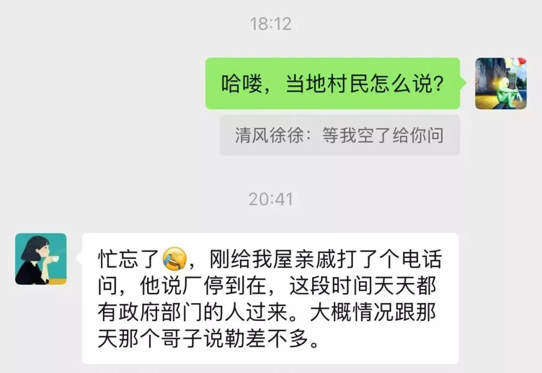 “潘老二”说:“最近我专门跑去了,厂确实停了,也没闻到啥味道了”。