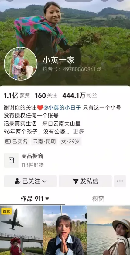 小英原名杨早英,出生于1996年,是自媒体账号“小英一家”所有者,她以记录云南农村生活走红。2022年10月19日,“小英一家”在抖音上发布了第一个作品。截至发稿,“小英一家”在抖音平台已有444.1万粉丝。