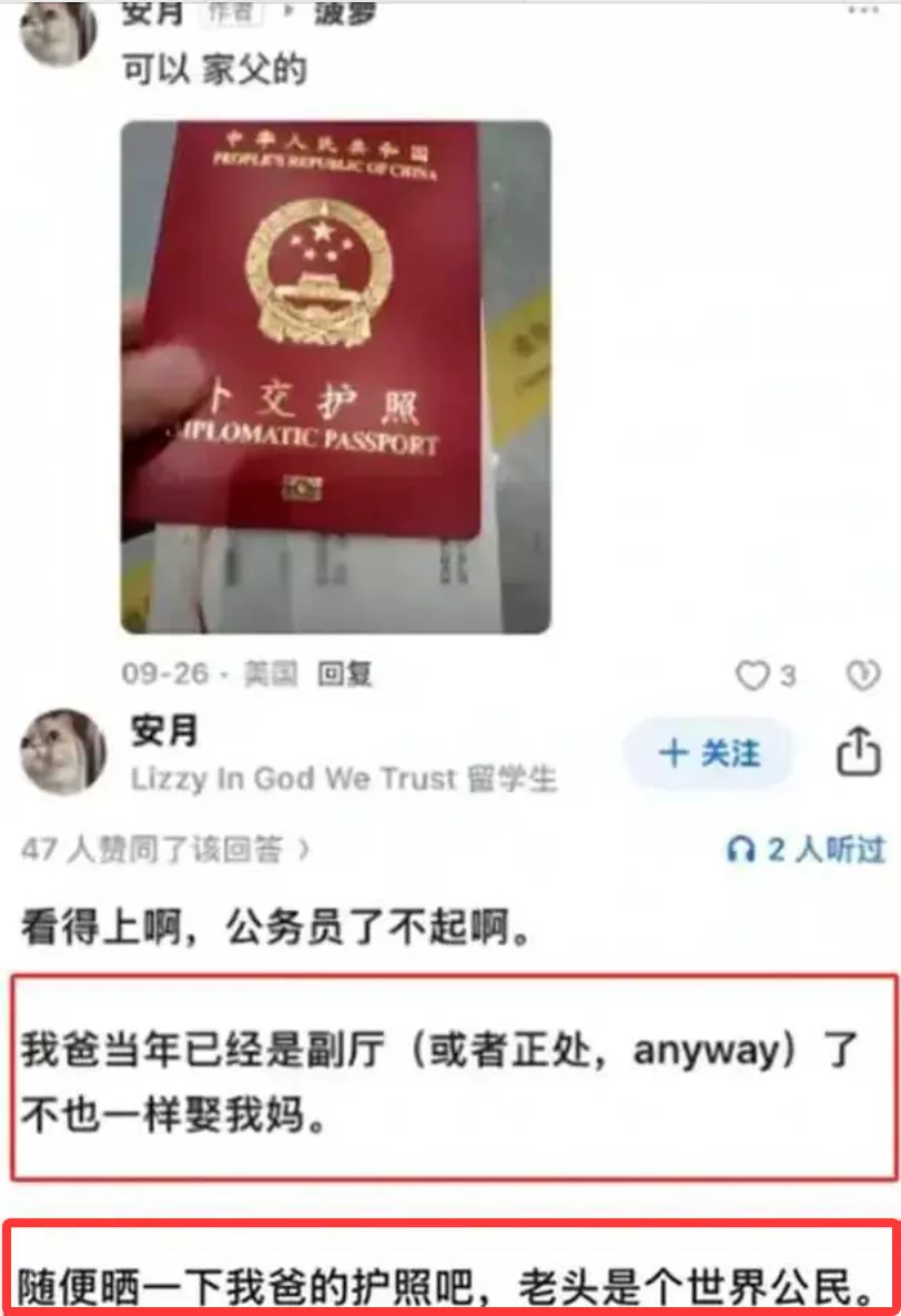 自爆家底,还自爆自己的爸爸在外面有私生子女,这么愚蠢的自爆,不免让我觉得这个女留学生要么是脑子不太灵光,要么就是个反串的了。