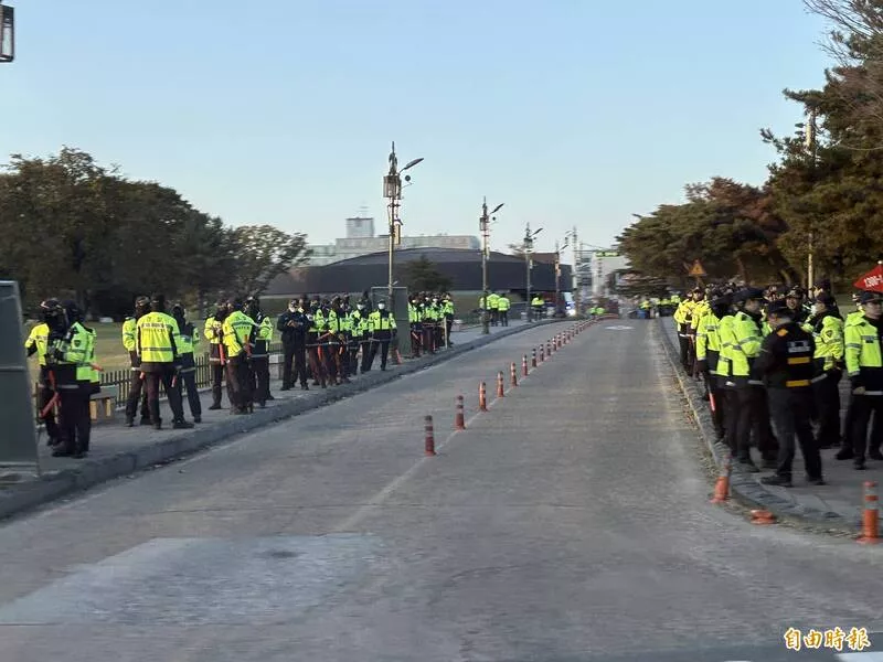 韩国警方出动大量警力。(记者黄靖媗摄)