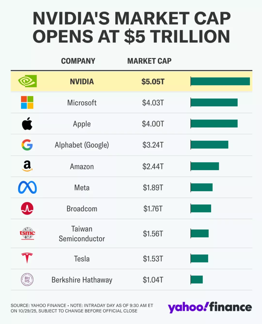 全球首个市值突破 5 万亿美元的公司,英伟达,7 月份才刚刚突破 4 万亿