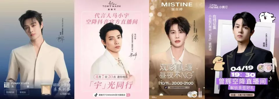 另一个方向是像短剧制作公司听花岛一样,开启“短剧造星”阶段。打造短剧明星的人设,让他们实现商务代言的变现。号称“短剧F4”的柯淳、马小宇、曾辉以及何健麒正在被各种美妆品牌哄抢,并将在双十一直播间带货。