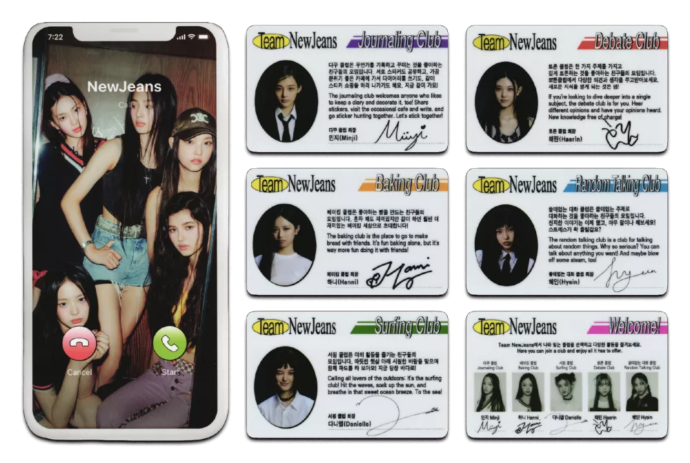 放在 NewJeans 上,这个“隐含作者”其实是包括 ADOR 厂牌所有工作人员、NewJeans 成员以及所有协助呈现过 NewJeans 作品的文化创意行业从业者。通过影像、服装、声音、字体、舞蹈、叙事、宣传策略多个复杂执行层面极度一体化的设计与呈现,NewJeans 才得以被塑造为一个始终一致的艺术人格及品牌形象:新鲜、轻盈、现代、年轻、丰富。