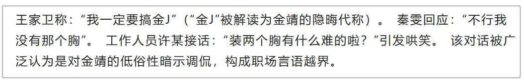 王家卫说“唐嫣很装”,又说陈道明“阴阳合体”,说扮演“爷叔”的老艺术家游本昌“不是省油灯”,甚至还疑似对女性开黄腔。