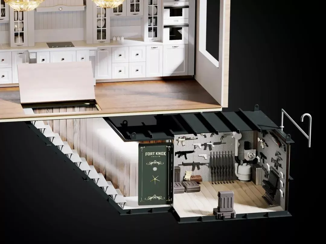 Atlas致力于美国人提供数十种款式的庇护所服务,最简单的地窖由12英寸厚,强度为4000PSI的钢筋混凝土加固,配有独立的枪械室,可以便捷地设置在房间地下。