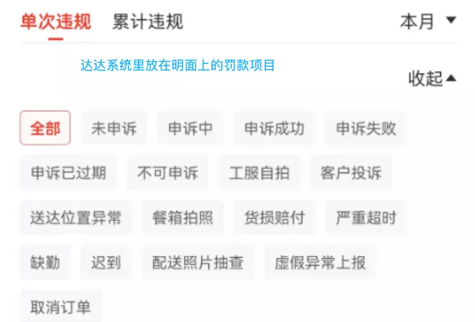 顾客投诉超时未能送到即被判定“送达不及时”,此处罚不可申诉,而且可以和严重超时叠加处罚。