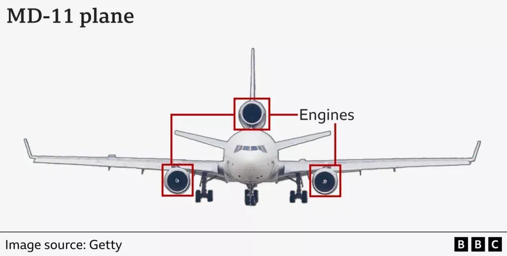 他补充说,即使失去一台发动机,货机仍可依靠另外两台飞行,但左翼火势可能已造成尾部发动机推力丧失。