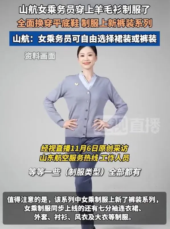 空姐穿毛衣上班被吐槽“很土”!山航回应