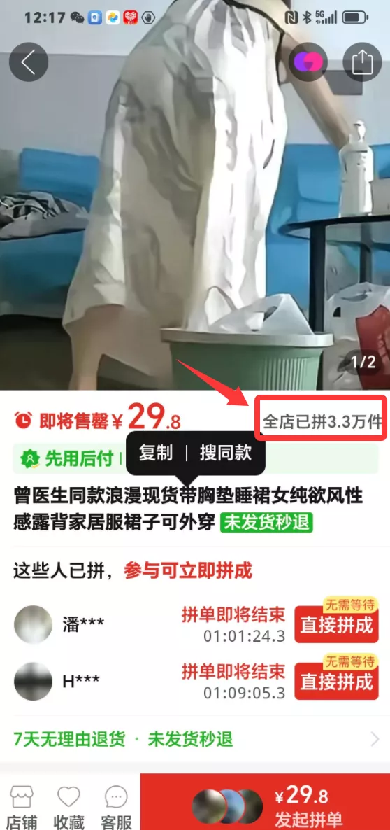 而这个同款睡裙一上架,果然引起了顾客的大量青睐,没过几天,这款睡裙就卖出了3.3万件!
