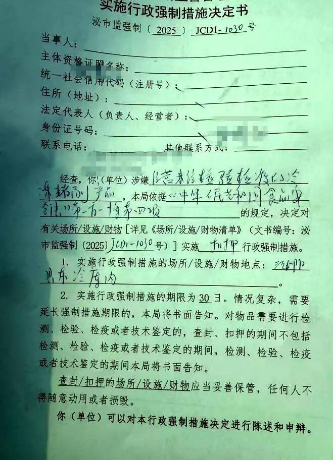 10月30日中午,司机突然给高先生发来信息,称这批货物被河南省泌阳县市场监管局查扣了。