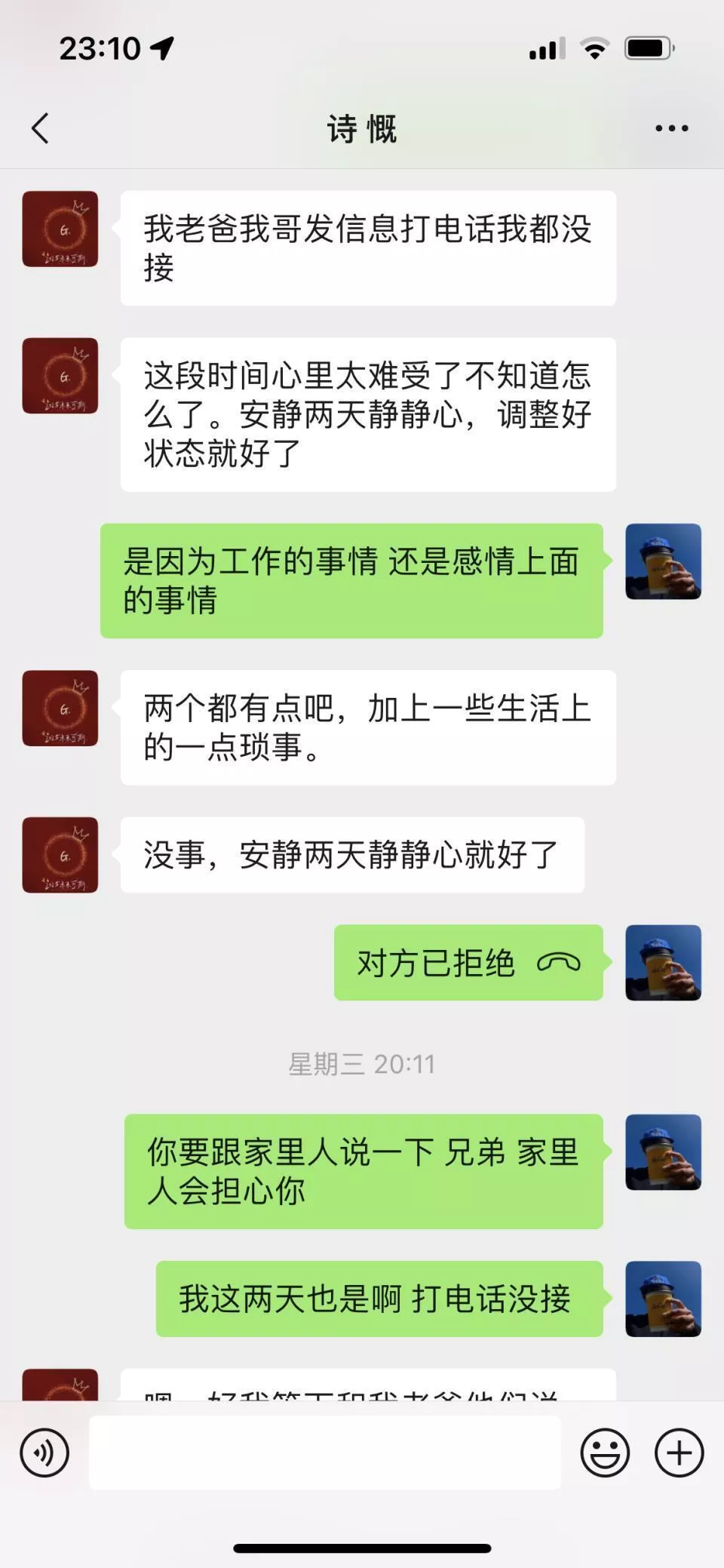 10月13日,廖某和朋友进行了最后一次微信聊天,之后联系就变得断断续续。10月22日晚上,家人通过廖某的发小给弟弟发消息,弟弟答应给父母回电,但家人迟迟没有接到电话。10月23日,家人通过另一位朋友以还钱的名义找弟弟,弟弟称手机快没电了,要求转到一个陌生的支付宝账号。家人怀疑与他们对话的已经不是本人了。