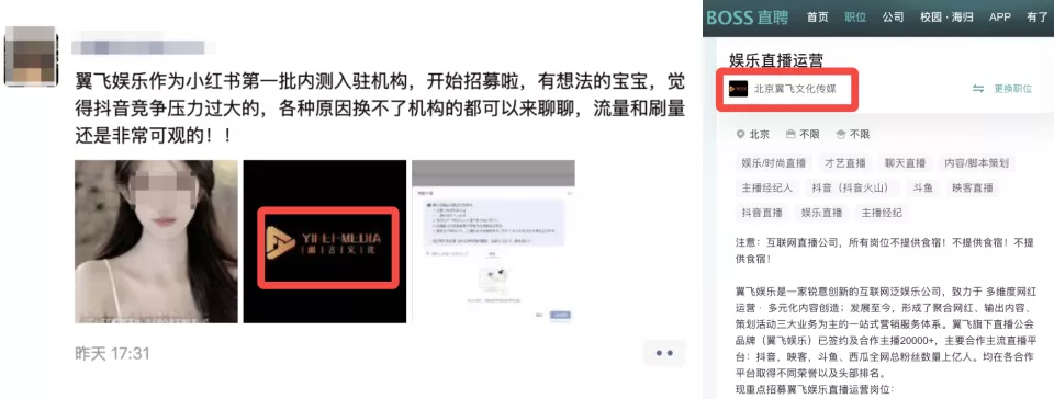 网友投稿显示,其中一位博主所在公司全名为【北京翼飞文化传媒有限公司】。