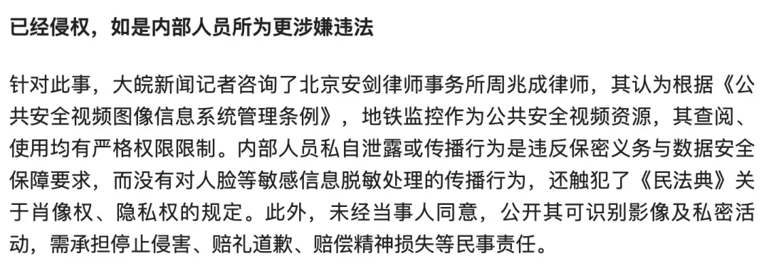 因为他们没有对记者说,一定要揪出这位当街如厕的靓仔,也没有说后期将对这个人进行恶狠狠地处罚,而是告知大众,已经对场地进行了消杀,打消了乘客对卫生方面的疑虑。而且他们还借此时普及了一个基本常识——内部工作人员私自将监控外传,是一种违法行为——这样的回应,是很能拉好感的。