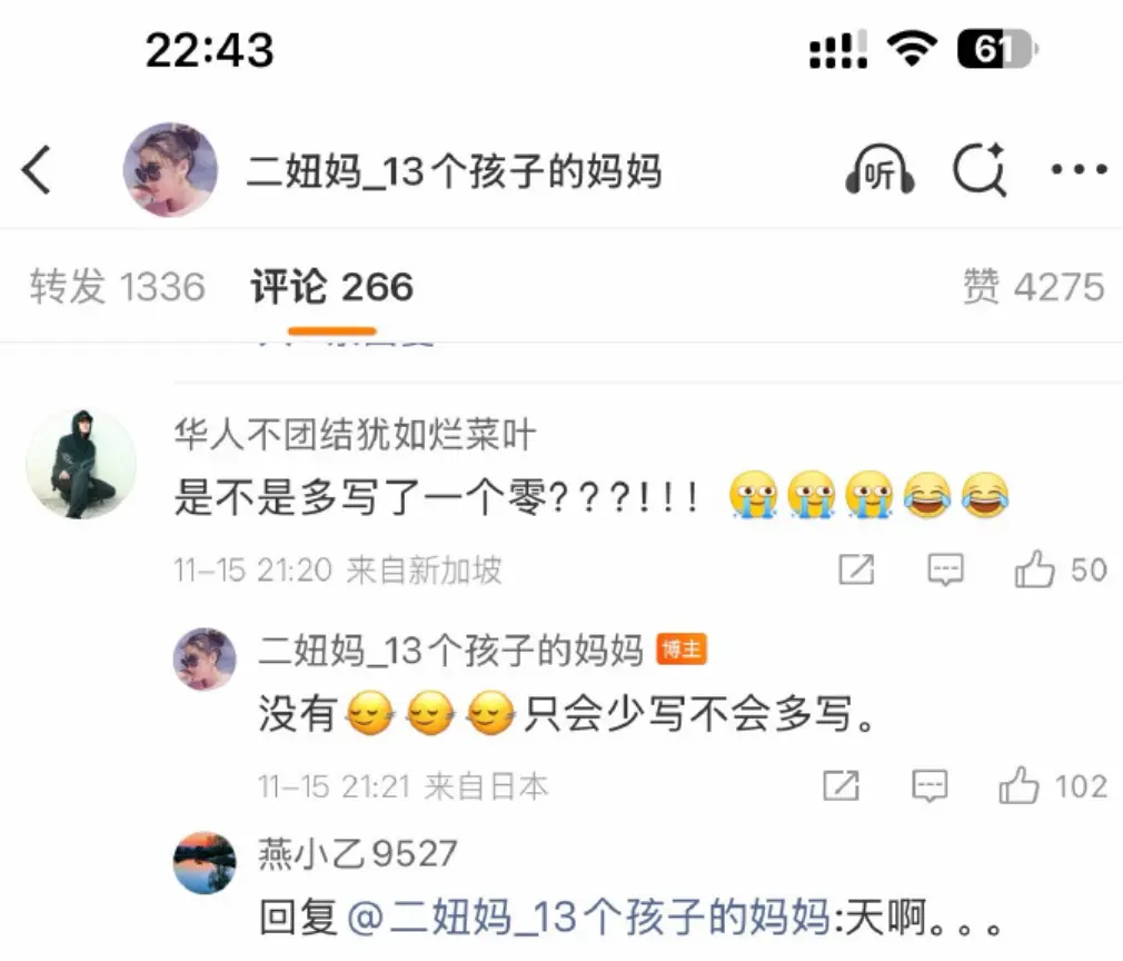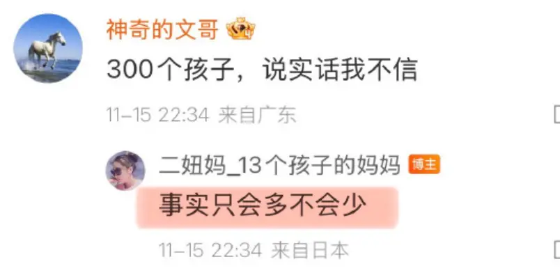 “二妞妈-13个孩子的妈妈”出现在了微博。