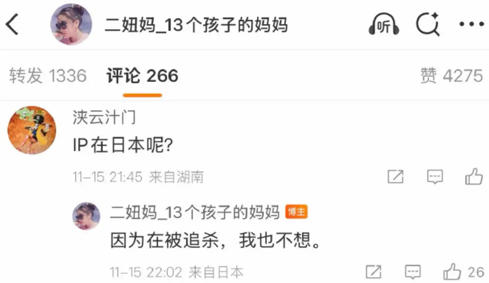 为啥ip在日本?二妞妈称因为“被追杀”。