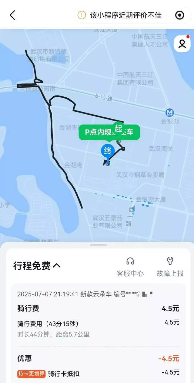 “客服说物损不能赔,除非我能证明这是车辆问题导致的。我提议,让他们找技术人员,把车子放到某个位置,我们都在场的情况下进行检测,看是不是车辆的问题。但他们的意思是让我把车子放到市政道路上,他们再派人去找这辆车子进行检测。我说,万一车子被他人骑走怎么办?因此没同意这个方案。”