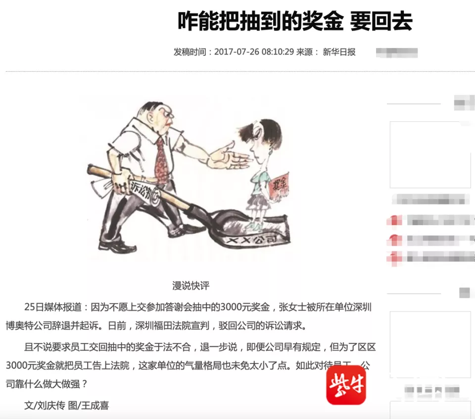记者梳理发现,因公参加活动中奖,奖品被公司索要的情况在职场中并非首次出现。