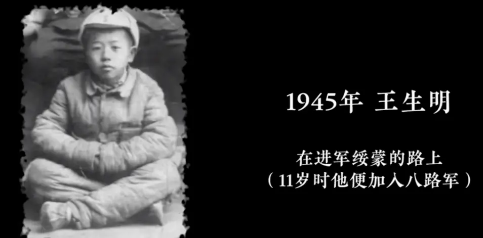 王生明生于1933年端午节,又名端阳生, 山西平鲁人,9岁成为烈士遗孤,1944年4月11岁参加八路军,经历过绥蒙、晋中战役。1949年年底,他随军南下入川,又调广州、武汉空军司令部工作,1958年转业。