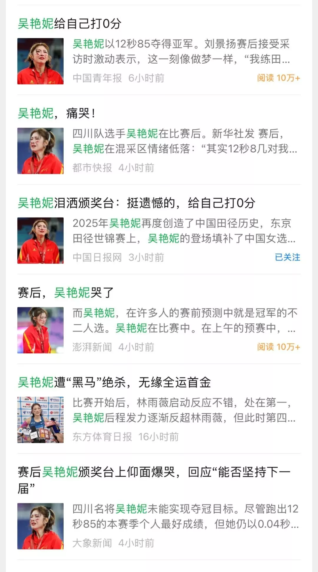 赛后的新闻媒体报道,几乎清一色把标题和头图聚焦在吴艳妮身上: