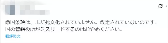 有网民指出,就算“敌国条款”在1995年被认为“不合时宜”,但该条款至今未被删除,并且在2025年被高市政权“激活”了。