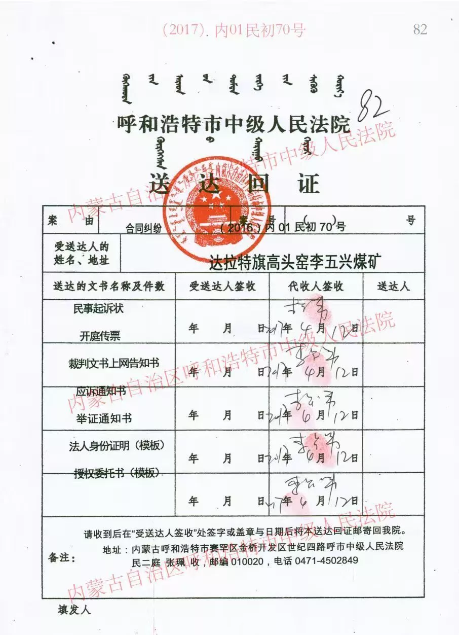 2017年8月11日,针对5000万元的循环贷款纠纷,同样在李五兴煤矿未到场的情况下,呼市中院缺席审理,作出(2017)内01民初71号民事判决书,判决包括李五兴煤矿在内的五名被告共同偿还本息3993万余元。