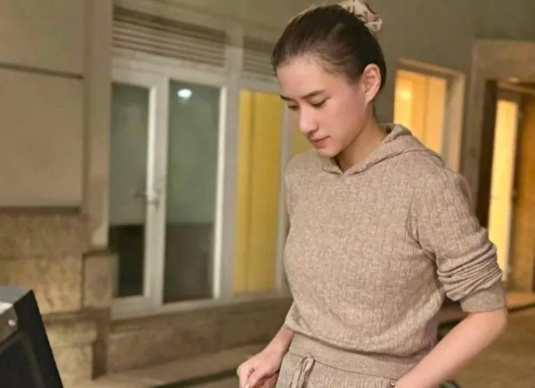 她穿着一套干练的套装,在赌王三太的豪宅里烤肉享受生活。