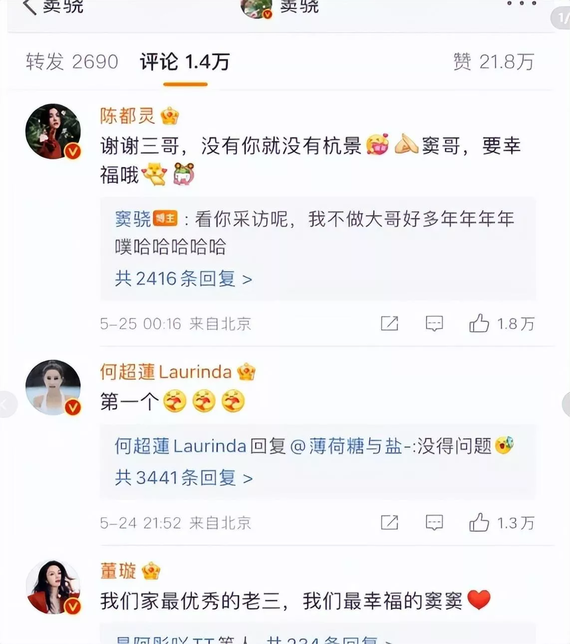 可是在剧宣的关键期间,何超莲高调晒合照、抢评论区前排,给所有磕CP磕得正上头的粉丝都泼了一头冷水,顺便还给他们提了个醒,宣告了他们磕的男主是自己的。