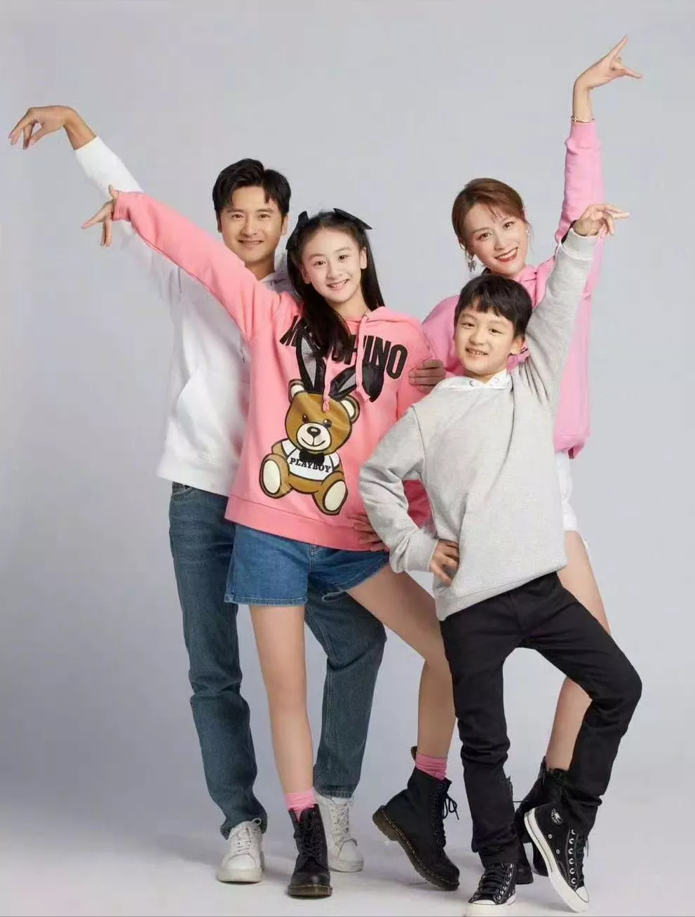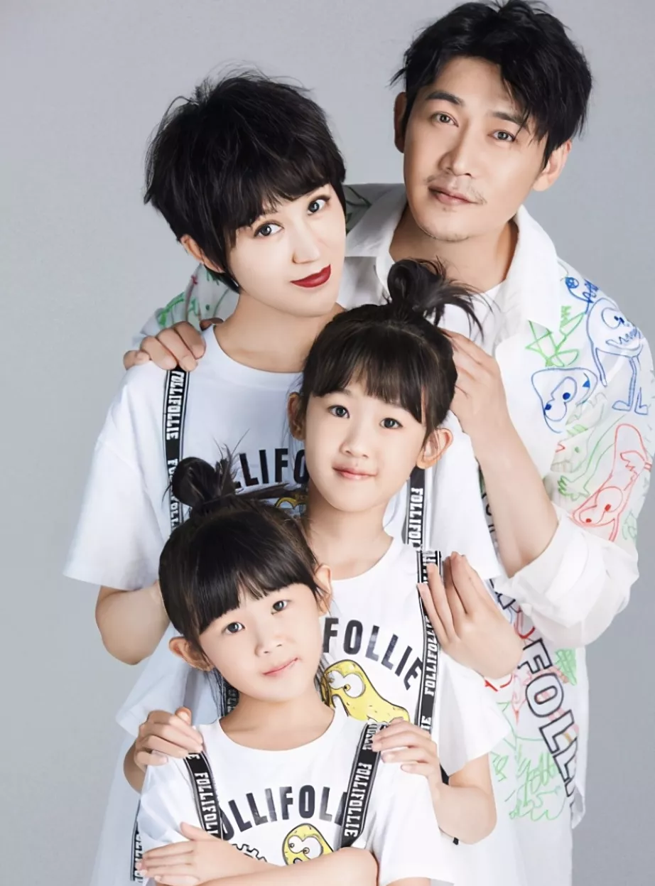两个孩子也是又像爹又像妈,一家人共用一张脸。