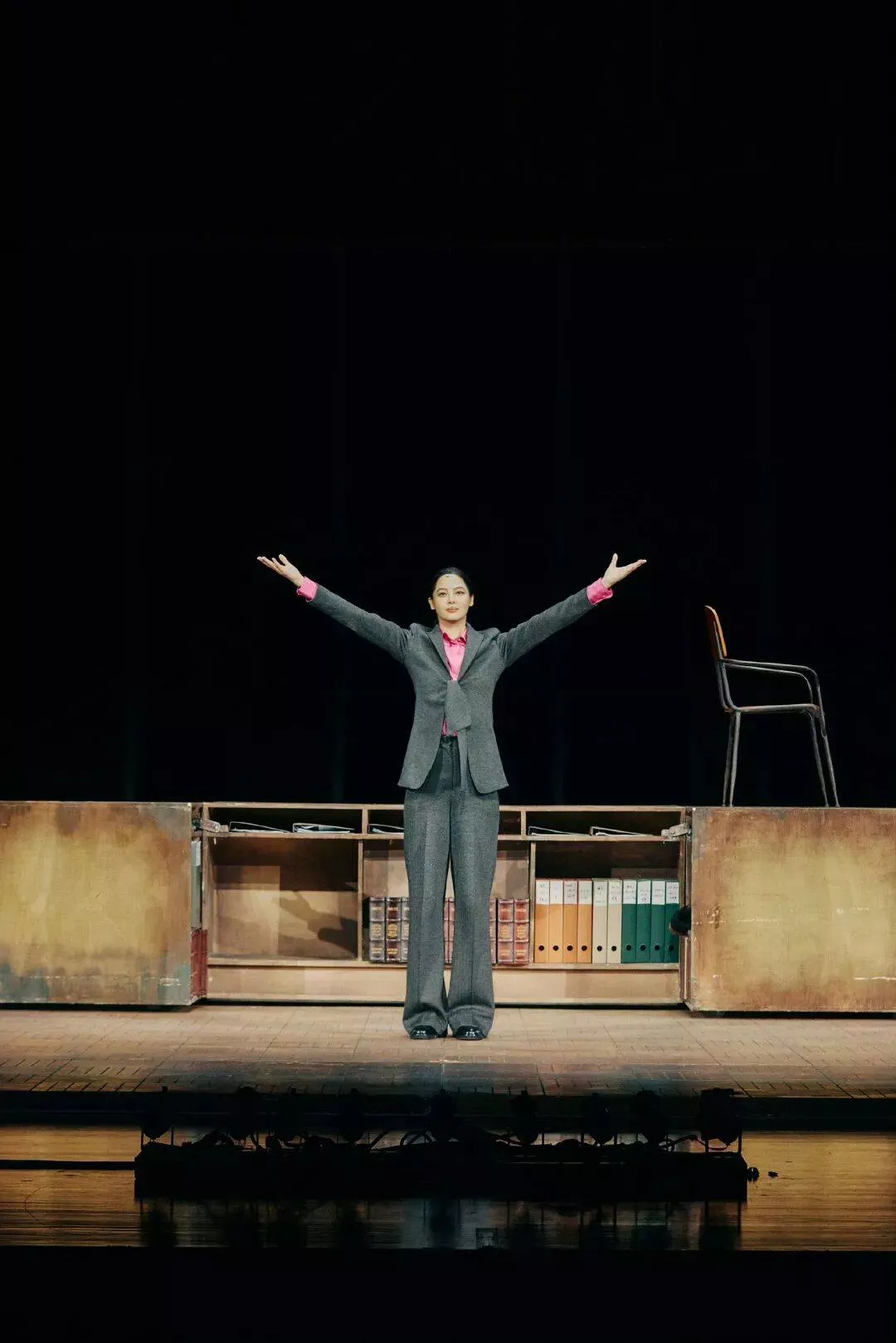 辛芷蕾不仅是女律师,还要同时扮演性侵施暴者、法官、母亲、同事……她在舞台上啜泣、崩溃、嘶吼、热舞、大哭,始终都是一个人在演所有戏份。