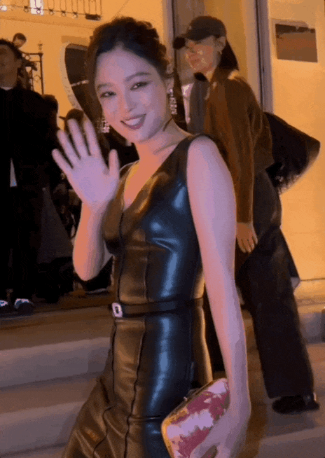 果然红气养人,最近的蕾子,又在10月3日亮相巴黎时装周,一身修身黑皮裙气场全开,淡淡一笑,尽是花旦风范。