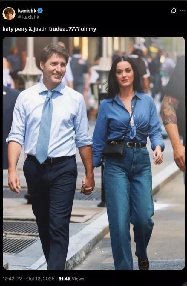 流行音乐界顶流女歌手“水果姐”凯蒂·佩里和53岁的加拿大前总理特鲁多了。