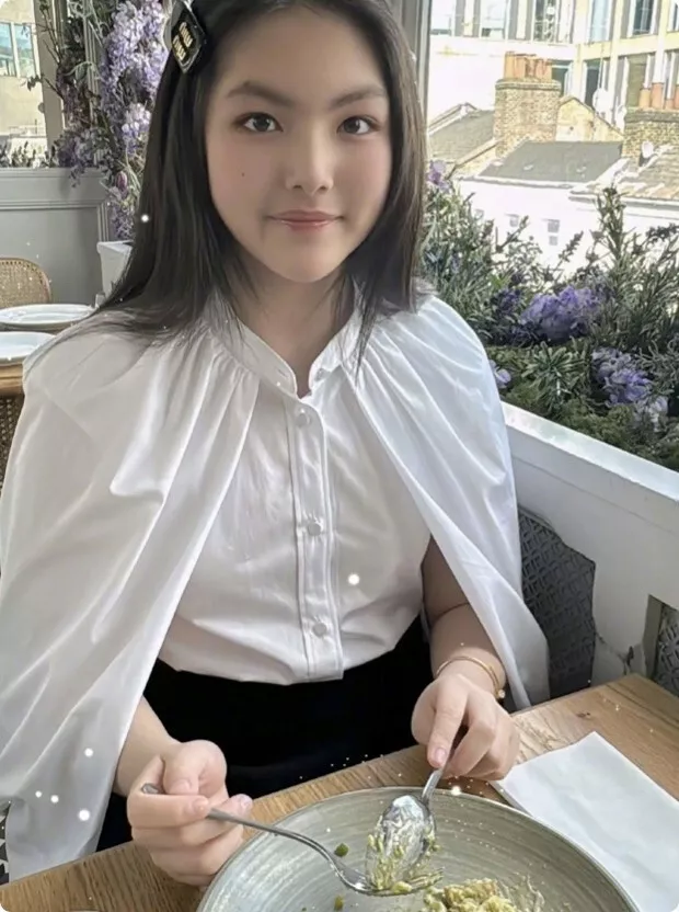 而她的笑容甚至有点李湘的风采,镜头里的她笑起来的样子很富态,圆润的少女脸庞,展现着她锦衣玉食的千金生活。