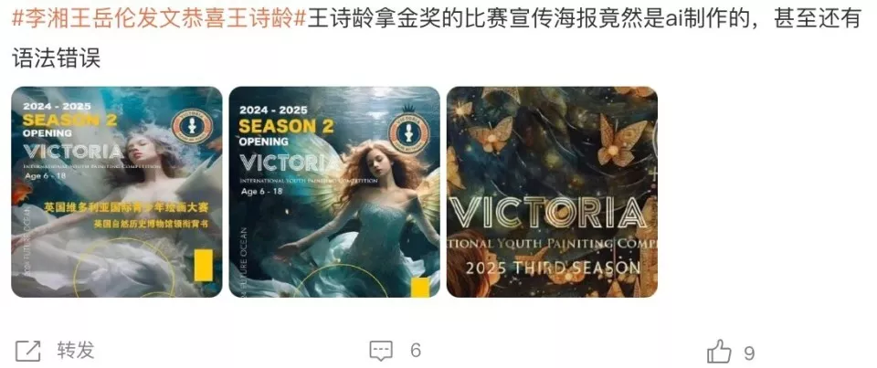 而李湘没过多久又晒出王诗龄获得“维多利亚国际青少年绘画大赛”金奖的照片。