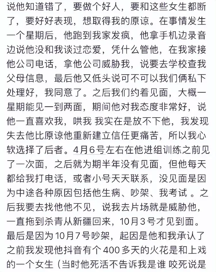 今年国庆期间,李禹熹发现荣梓杉和一个上戏的女生抖音火化续了400多天而吃醋,由此引发了双方决裂。