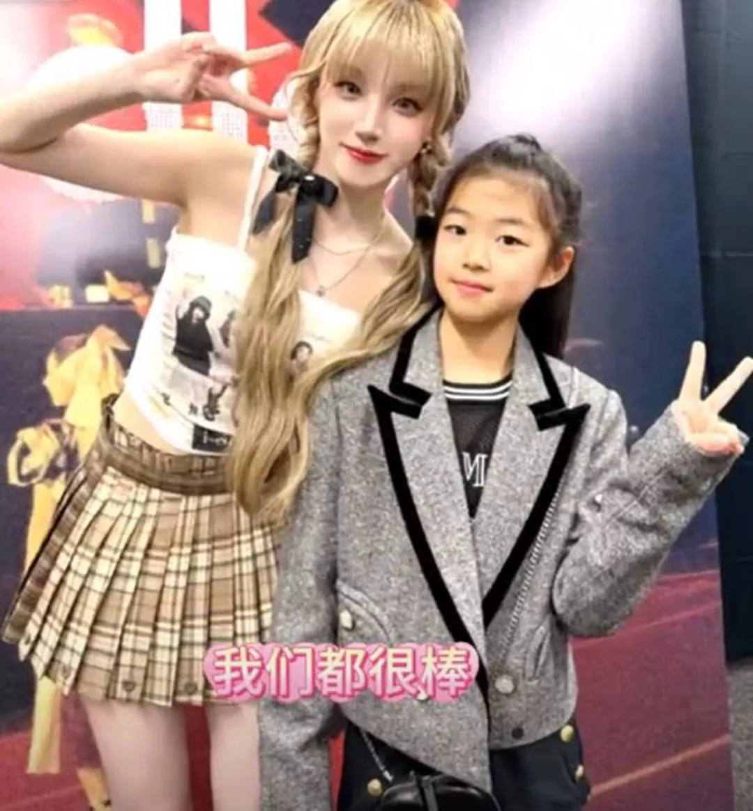 画面中,见到偶像还能合影留念的醒醒略显害羞。值得一提的是,醒醒当天的打扮极具女团风格,一看便是用心追星的粉丝。