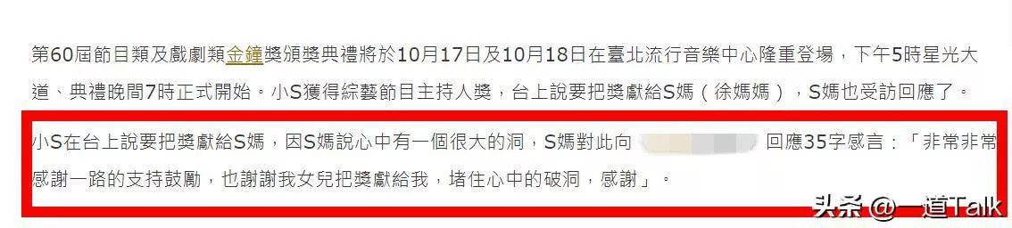 而小S不仅在主持节目,就算在说获奖感言的时候,也是一直把大s挂在嘴边。