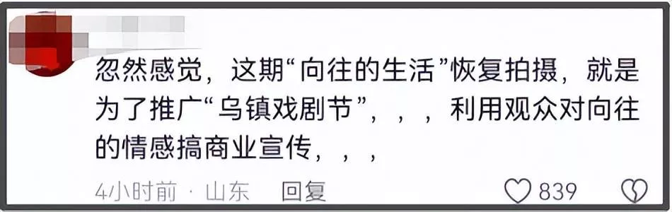慢综艺《向往的生活》本来已经停播,今年突然恢复录制给了很多老粉期待,如今播出后网友才恍然大悟:原来《向往》复播只是黄磊推广乌镇戏剧节的一环,利用观众对《向往》IP情怀引流大搞商业宣传!